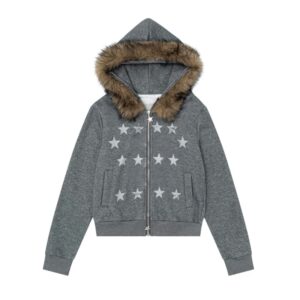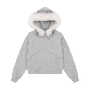 Gray Hoodie with Asymmetrical Zipper and Hip-Hop Style